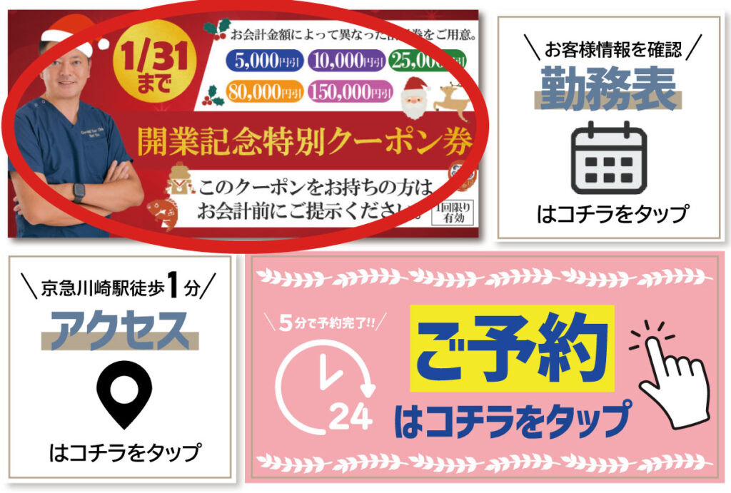 下記に当院の料金表がありますのでぜひ気になる治療がありましたら